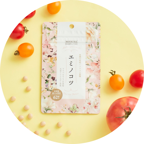 機能性表示:本品には、大豆イソフラボンが含まれます。大豆イソフラボンには骨の成分を維持するのに役立つ機能があることが報告されています。本品には、リコペロサイドHが含まれます。リコペロサイドHには、肌の弾力を維持し、肌の健康に役立つ機能があることが報告されています。