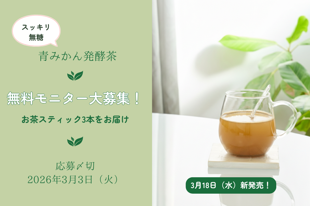 発売前の「青みかん発酵茶」のモニターを400名大募集!この味を、あなたの言葉で教えてくれませんか?
